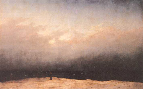 Dazu gehört ein Anspruch, den das Herz macht, und ein Abbruch, um mich so auszudrücken, den einem die Natur tut. Dies aber ist vor dem Bilde unmöglich, und das, was ich in dem Bilde selbst finden sollte, fand ich erst zwischen mir und dem Bilde, nämlich einen Anspruch, den mein Herz an das Bild machte, und einen Abbruch, den mir das Bild tat; und so ward ich selbst der Kapuziner, das Bild ward die Düne, das aber, wo hinaus ich mit Sehnsucht blicken sollte, die See, fehlte ganz. Nichts kann trauriger und unbehaglicher sein, als diese Stellung in der Welt: der einzige Lebensfunke im weiten Reiche des Todes, der einsame Mittelpunkt im einsamen Kreis." [...]