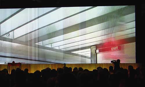 Wenn die Journalisten in den Presseveranstaltungen mit eben diesen „Specs“ vertraut gemacht werden, dann liegt es im wesentlichen Interesse des Herstellers, dass sie diese in möglichst wohlklingenden Worten kommunizieren. Und es wird viel dafür unternommen, dass dieses den dafür eingeladenen Multiplikatoren auch leicht von der Hand gehen mag: Eine gute Inszenierung. Ein hervorragendes sinn-optisches Design der Hintergrundgrafik. Eine Live-Demo ohne doppelten Boden. Und mit - was wir aber so in Europa nicht kennen - Massen von „Klackchören“ im Hintergrund des Saales: die jedes er neu angekündigten Features des „heilstiftenden“ Palm-Phones mit lautem Beifall und Hallo, ja mit Jubelschreien zu kommentieren bereit waren.