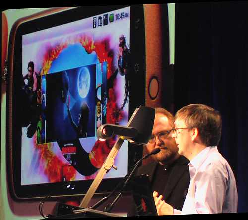 Zuvor wurde und das Thema der neuen Erzählweisen aus der Adobe-Sicht präsentiert. Wie schon am Abend zuvor im Hard-Rock-Café wurde deutlich, welch ungeheure Vielfalt der Möglichkeiten schon jetzt besteht, die Welten von Stills und Bewegtbildern, von 2D und 3D - Präsentationen zusammenfliessen zu lassen: vom überdimensional grossen Screen bis hin zum mobilen Endgerät.