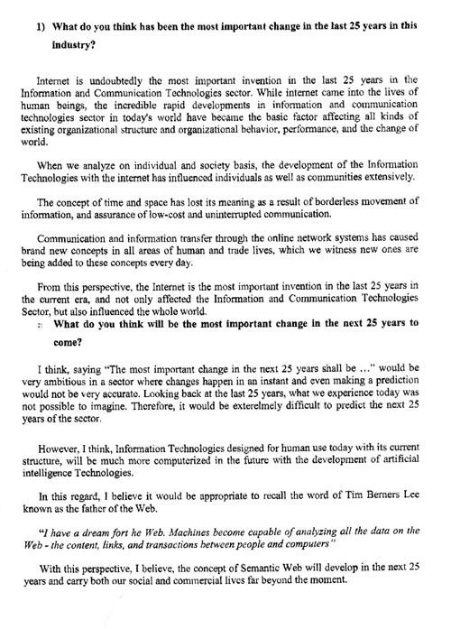 And this interview has been send to us by Dursun Topcu, Vice President, Istanbul Chamber of Commerce, Turkey