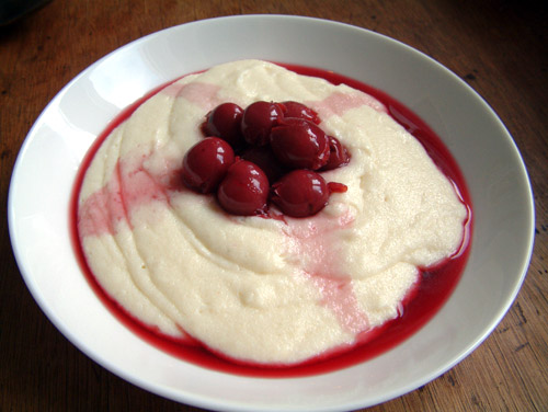 Zur Illustration dieses Textes wird ein Foto gesucht, auf dem ein solcher Griessbrei mit Kirschen zu sehen ist.