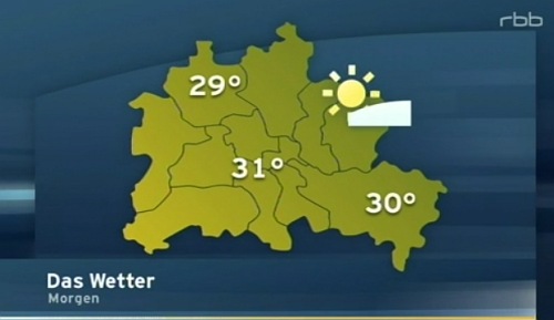 So wie es die Wetterkarte des rbb vor der 20 Uhr Tagesschau anzeigt.