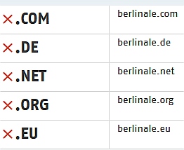 Und diese Seite hat vor alle 5 Top-Level-Domains .com .de .net .org & .eu ein rotes Kreuzchen gesetzt, bietet dann aber die folgenden neuen noch freien Top-Domains an: