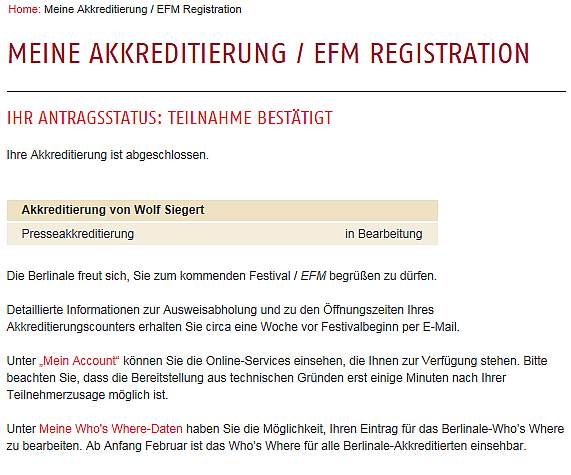 Während der Vorbereitungen wurde - zunächst aus Versehen - die URL: "Berlinale.com" eingeben.