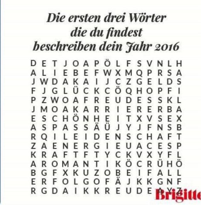 Dienigen Worte, die Ihnen als erste auffallen, sind - angeblich - Ihre "Leitmotive" für 2016!
