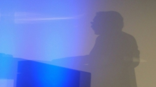 Als Intro entschuldigt er sich bei Richard, dass sein Vortrag nicht in Englisch sein wird. Und dann... macht er mit einem - englischsprachigen - Werbe-Video auf.