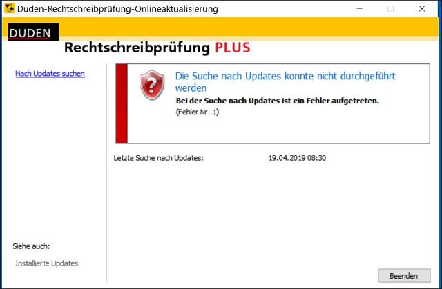 Auch die Aktualisierungsfunktion konnte nicht aufgerufen werden: