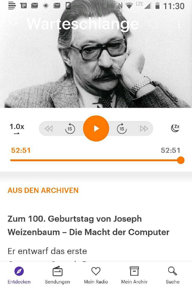 In der DLF-App für Android ist unter dem Vermerk "Aus den Archiven" ein Interview vermerkt und eingestellt, das er zwei Jahre vor seinem Tod - Weizenbaum ist in Berlin Weissensee begraben - dem RIAS gegeben hat.