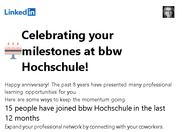 Rückblickend auf die Zeit der in LinkedIn eingangs angezeigten Lehrtätigkeit vor 2024 bleibt nur noch festzuhalten, dass in diesem Zeitraum die Position des Kanzlers / der Kanzlerin der Hochschule nunmehr das dritte Mal neu besetzt werden musste.