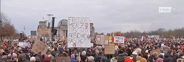 Bilder aus der "Abendschau" des rbb von bis zu zweihunderttausend Menschen, die nicht bereit sind, zu akzeptieren, dass Kräfte rund um die AfD einen immer stärkeren Einfluss auf die Parlamente und anderen Parteien in Deutschland nehmen. So, wie schon in unserem Beitrag vom 20. Jänner 2025 eindeutig dokumentiert Partei-Plakat-Vorlagen: lässt sich so alles ändern?
