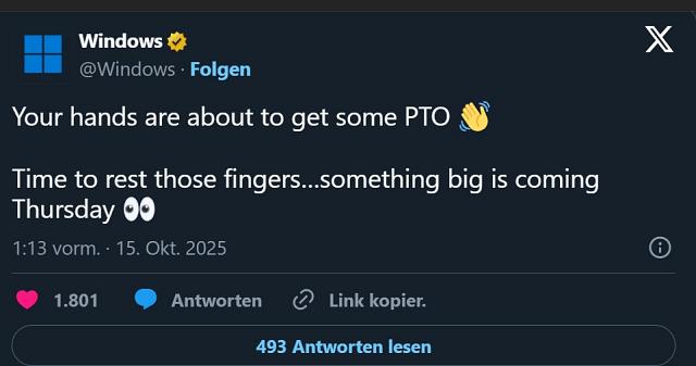 Am 8. Oktober 2025 wurde diese Mitteilung veröffentlicht: