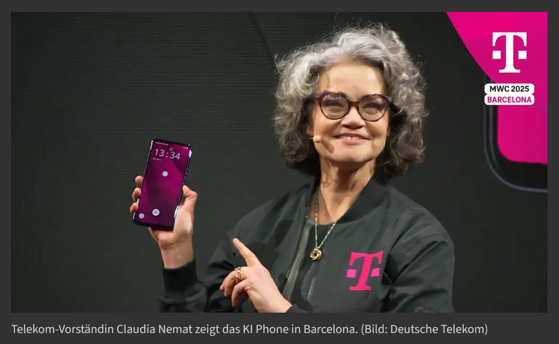 Das gleiche - ja, das selbe - Symbol- Foto ist auch schon in dem tagesschau-Beitrag vom 3. März 2025 zu sehen: Pläne der Telekom "App-freies" Smartphone dank KI.