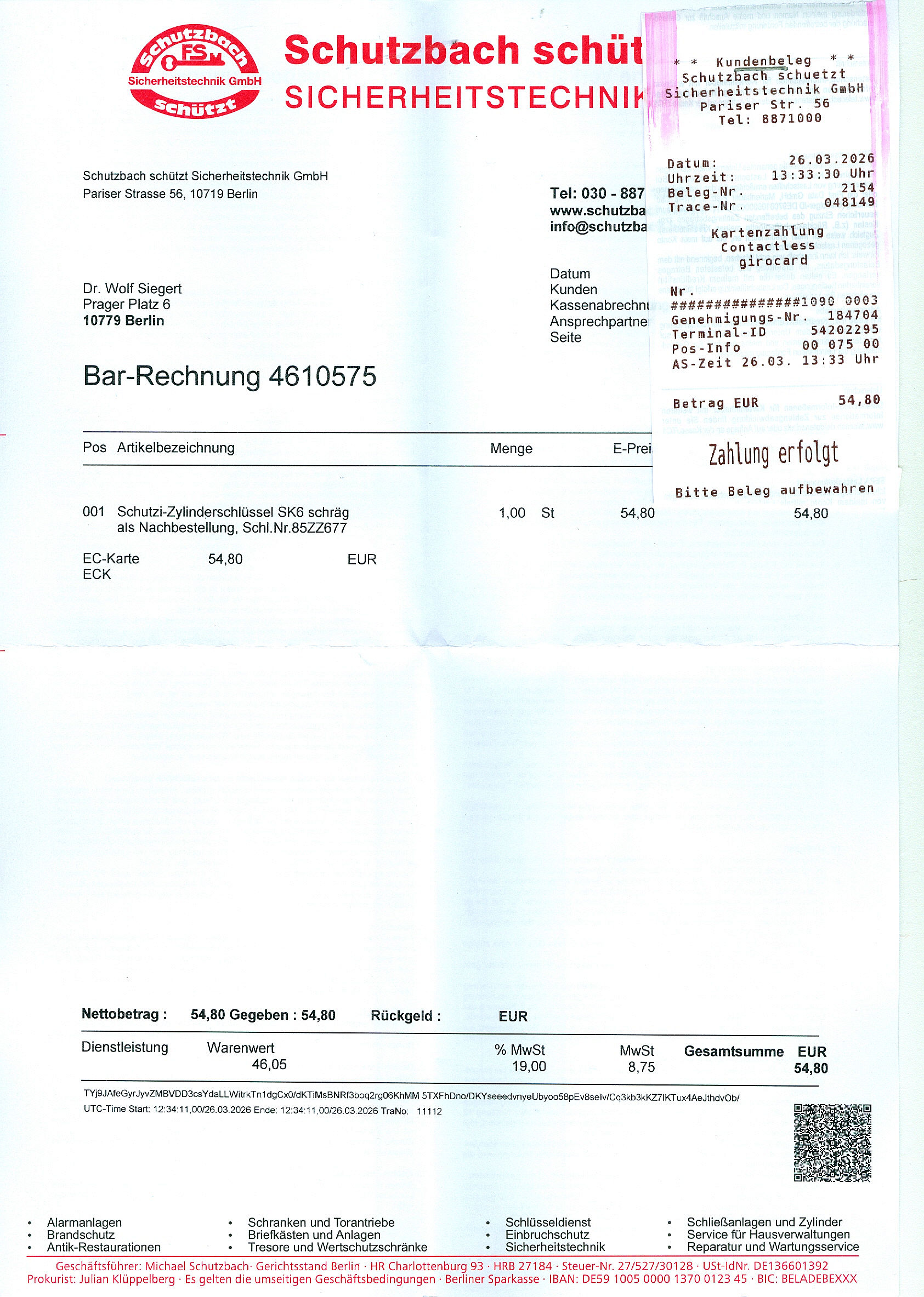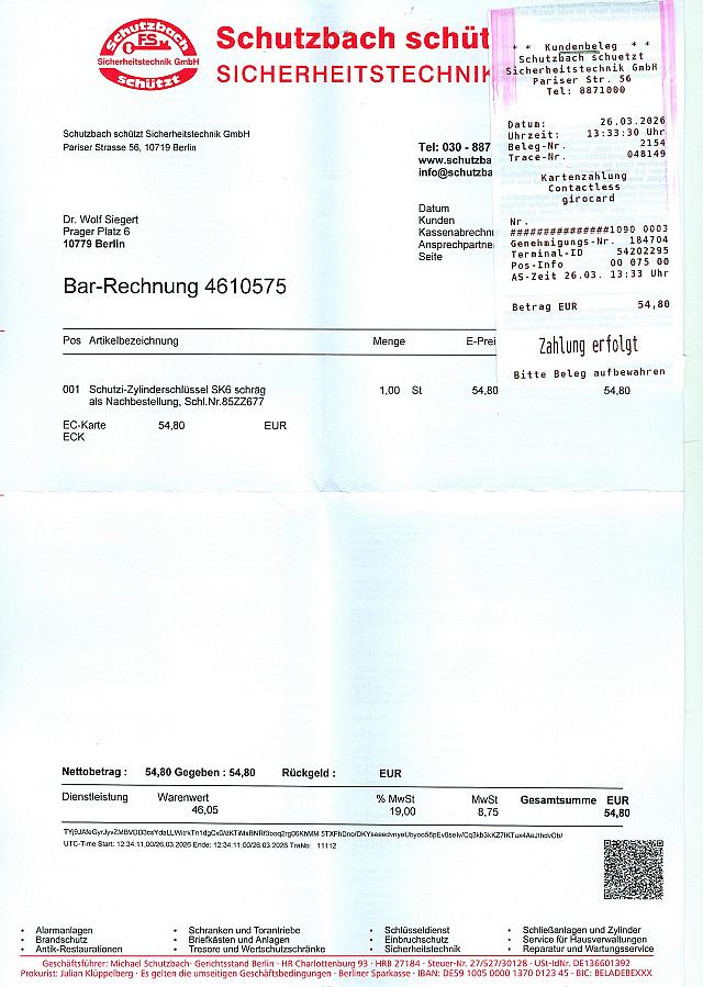 WS_2026-03-27 VON Dr. Wolf SiegertZUM Samstag 28. März 2026Letzte Bearbeitung: 27. März 2026 um 23h59min Die Antwort auf die Frage, was das Anfertigen der Kopie eines Haustürschlüssels nun kostet, lautete: Über fünfzig Euro (sic!) Zum Seitenanfang.