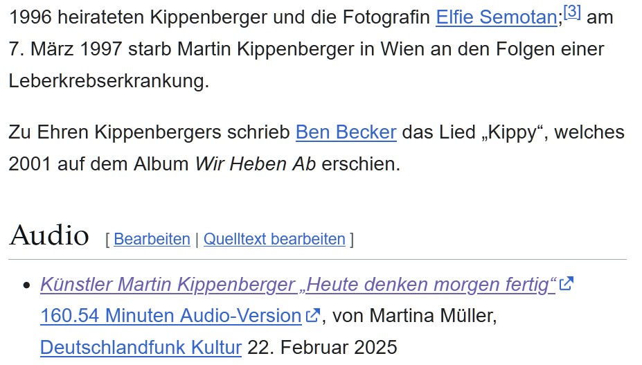 "Die Kunst war nicht Abbild seines Lebens, sie war sein Leben", erinnert sich Susanne Kippenberger. "Wer sich dem Abgrund stellt, muß sich nicht wundern, wenn er fliegen kann", ist auf einem Gemälde zu lesen. "So hat er gearbeitet, so hat er gelebt - immer unterwegs, immer am Abgrund lang."