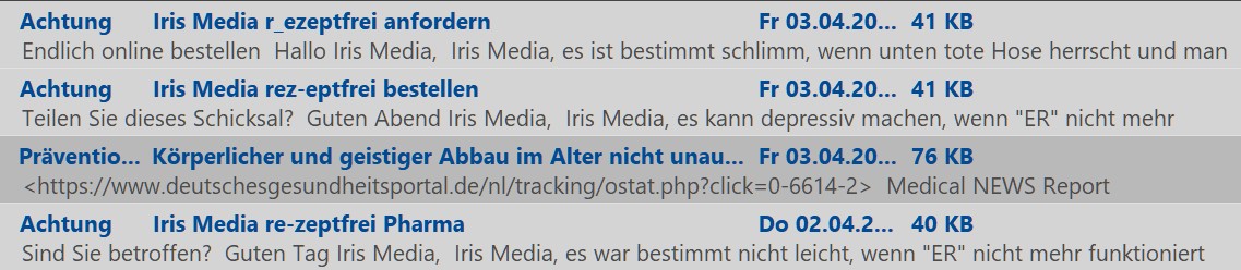 Die bittersten Folgen sind die von Anmeldungen wie die bei einem Pflegemitteldienst, der dann die Mailadresse an Anbieter wie diese hier weiterverkauft hat: