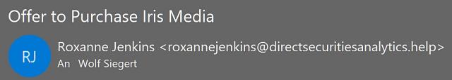 We’re looking to get a hold of you regarding Iris Media. We have a PE firm that is interested in acquiring companies in Iris Media’s industry.